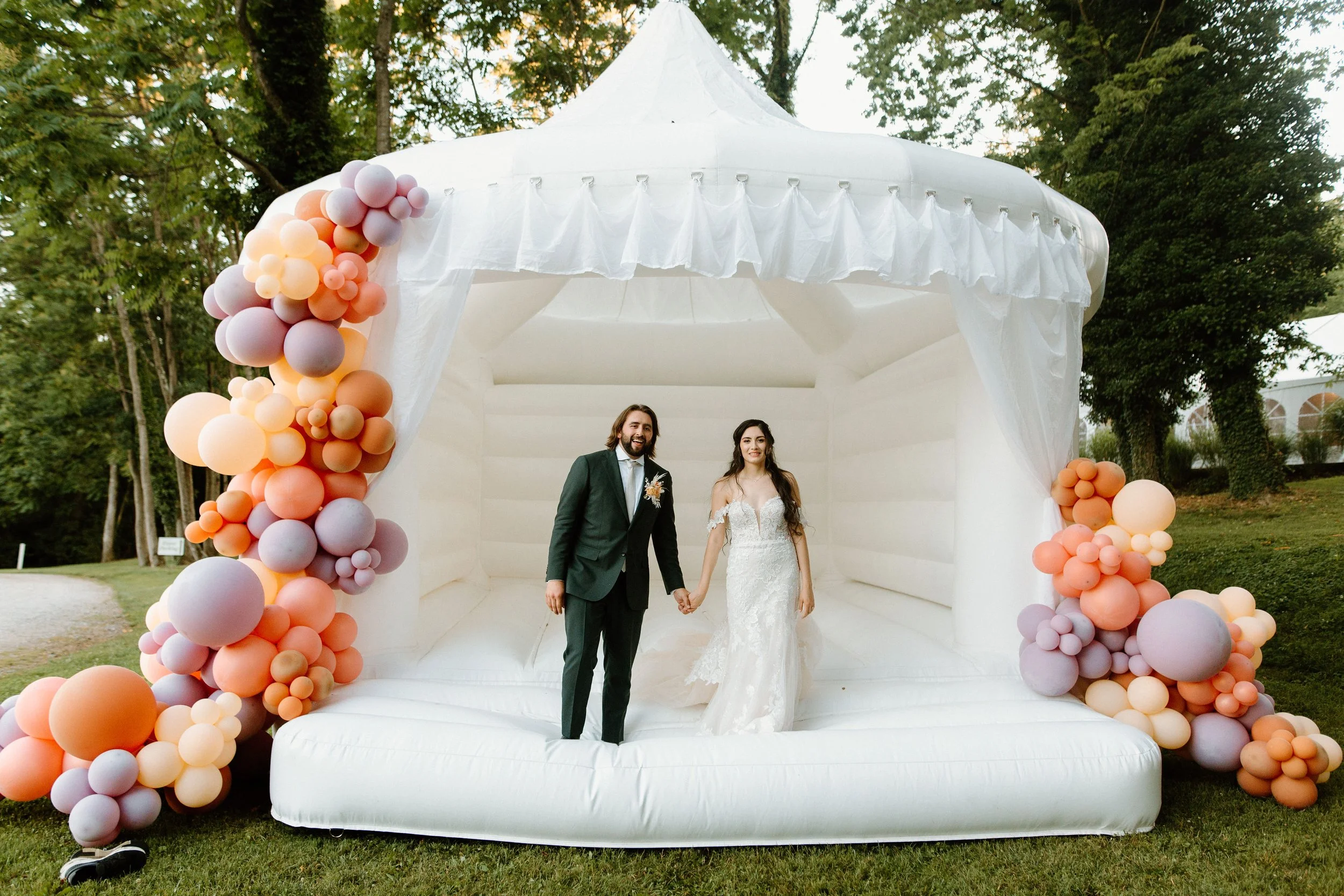 It all started with an idea. Darian, the owner of Hazelwood Wedding Rentals, is a full time wedding photographer. After working 40+ weddings a year, she was inspired to make a spunky difference. Then, just like that,“Willow”, our Wedding Bounce House was born. Each day we grow and add more fun items to our inventory for your big day!
